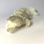 Le Crocodile Blanc aux coulées d'Or Blanc est une pièce artistique unique alliant luxe et élégance.