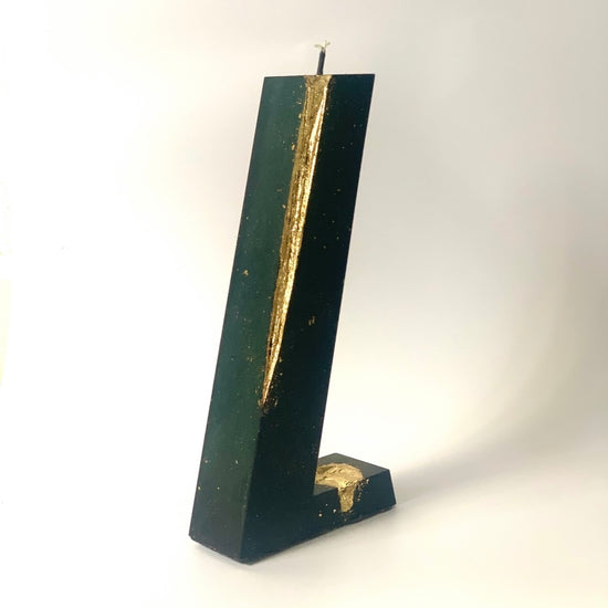 La bougie Lueur d'Or nuit de jade avec son parfum au bois noir et ses coulées d'or à la feuille d'or jaune est également une véritable œuvre d'art qui évoque une sophistication mystérieuse, enveloppant l'atmosphère de son aura raffinée et captivante.