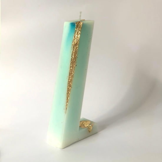 La bougie Lueur d'Or parfumée au miel réalisée à la main avec ses coulées d'or à la feuille d'or jaune est une véritable œuvre d'art qui illuminera vos moments de détente et de convivialité.